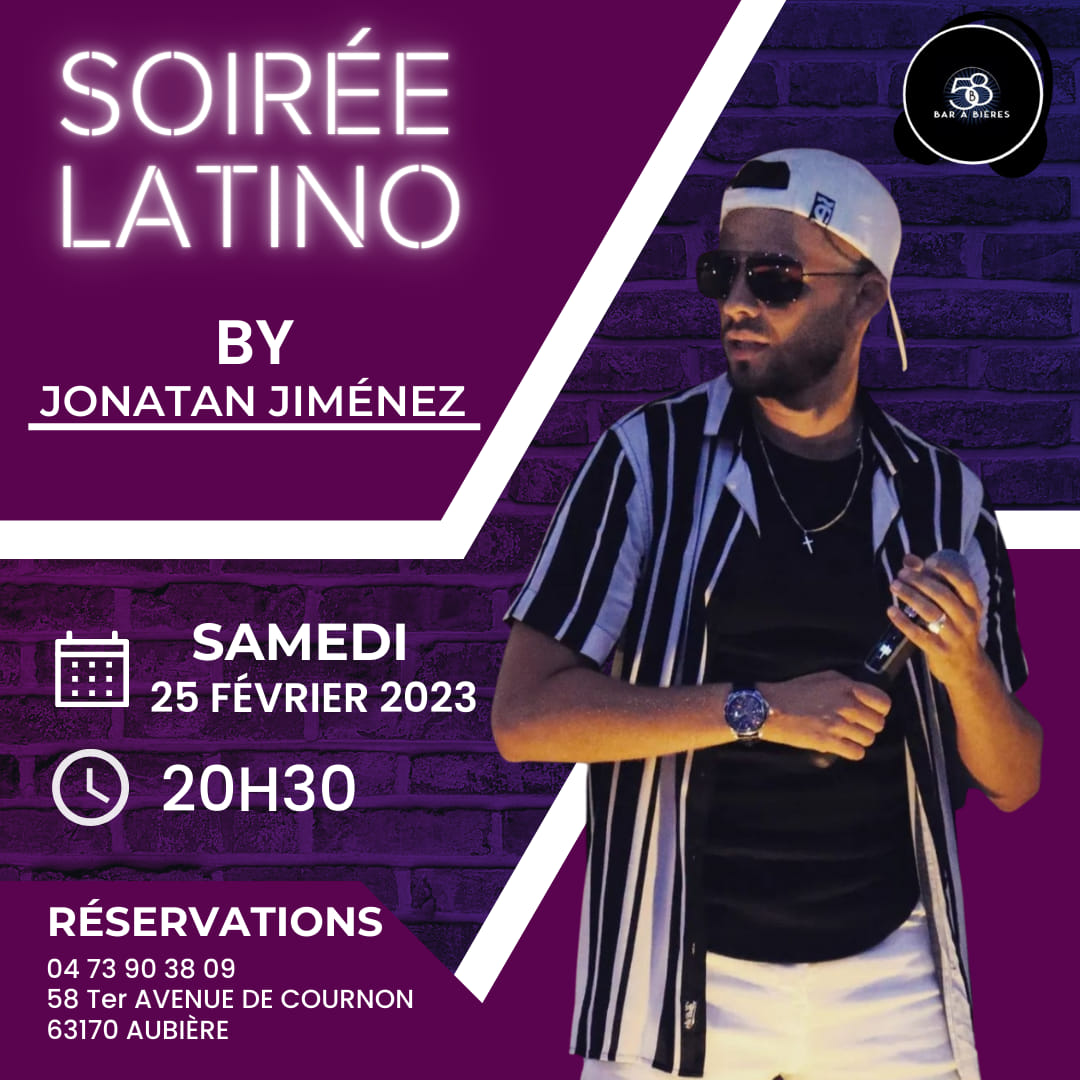 Jonatán Jiménez vous donne rendez-vous pour une soirée latino le 25 février 2023 à partir de 20h30 au 58B à Aubière, 58ter avenue de Cournon. On fait le plein de soleil, de musique et de danse avec trois heures de concert.